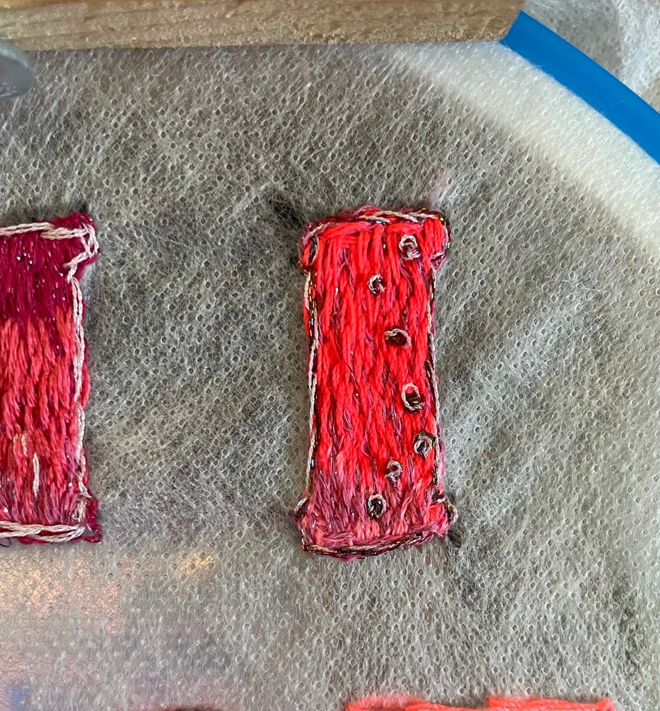 I’m working with that fiddly dissolvable fabric, meaning progress is even slower than normal. But! I seem to have honed my technique a bit and now things are moving a little faster.